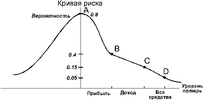 Участок АВ находится в области допустимого риска, участок ВС – в области недопустимого, СД и далее – в области критического риска.