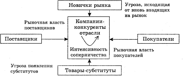 В этой модели автор предпринял попытку представить внешние для организации силы, определяющие уровень отраслевой конкуренции.