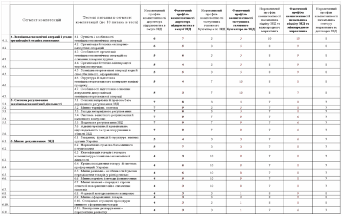 2.3 Аналіз доцільності організації оцінювання персоналу за основними компетенціями (ділових та особистісних якостей персоналу) в умовах специфічних вимог забезпечення зовнішньоекономічної діяльності