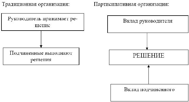 Партисипативная – организация, использующая участие работников в управлении. Тем самым обеспечивается мотивированность их труда. Обостряется чувство собственника. В таких организациях работники могут: