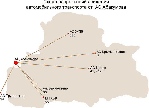 Рис.2.3 Схема напрямку руху автомобільного транспорту від АС Абакумова