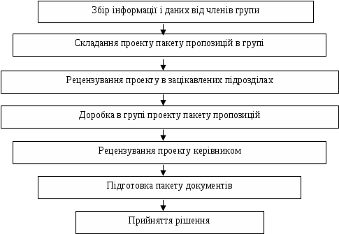Мал.3.2. Процедура розробки і прийняття управлінських рішень в групі