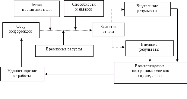 Если связи (функции), указанные на рисунке 3, ясные и прочные, то результаты будут оказывать сильное мотивирующее воздействие. Мотивация будет низкой, если слаба связь между сбором информации и качеством отчета. Можно выделить основные факторы, влияющие на силу этой связи: