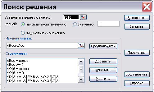 Установить курсор в поле Установить целевую ячейку диалогового окна и щелкнуть мышкой на целевой ячейке В8.