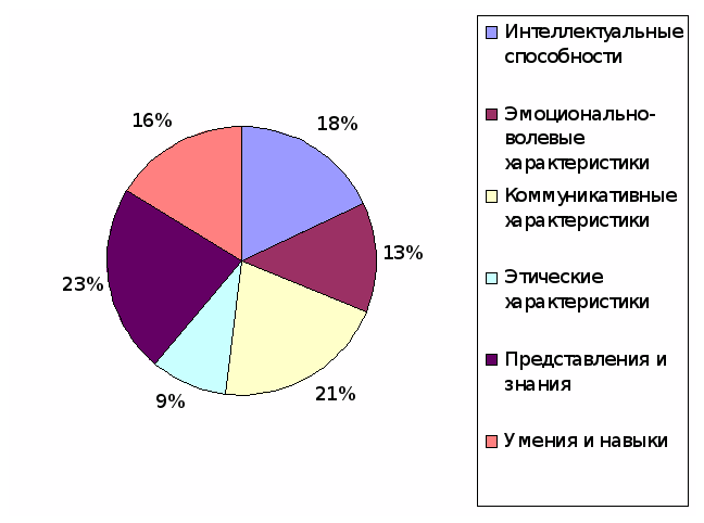 Эмоционально-волевые характеристики: работоспособность; эмоциональная устойчивость; организованность; уверенность в себе; реализм; целеустремленность; самоконтроль, самосовершенство; решительность; склонность к риску. |