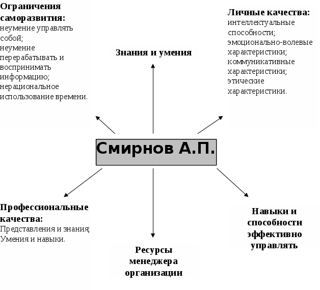 Из приведенной таблицы видно, что Смирнов А. П. обладает значительными знаниями в области его профессиональной деятельности и достаточными знаниями в области экономики и менеджмента. Такие важные показатели, как трудолюбие, предприимчивость, целеустремленность - на высоком уровне.