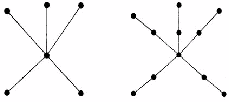 Рис.3. Звездная структура: а - с коротким (одинарным) лучом; б - с удлиненным (двойным, тройным) лучом