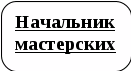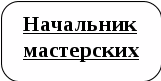 Проанализировав данную схему, можно кратко охарактеризовать ключевые моменты должности начальника мастерских. Он занимает руководящее положение в данном отделе, так как имеет в своём распоряжении достаточно большое количество подчинённых, как - то: мастера цехов, бригадиры цехов и непосредственно рабочие.