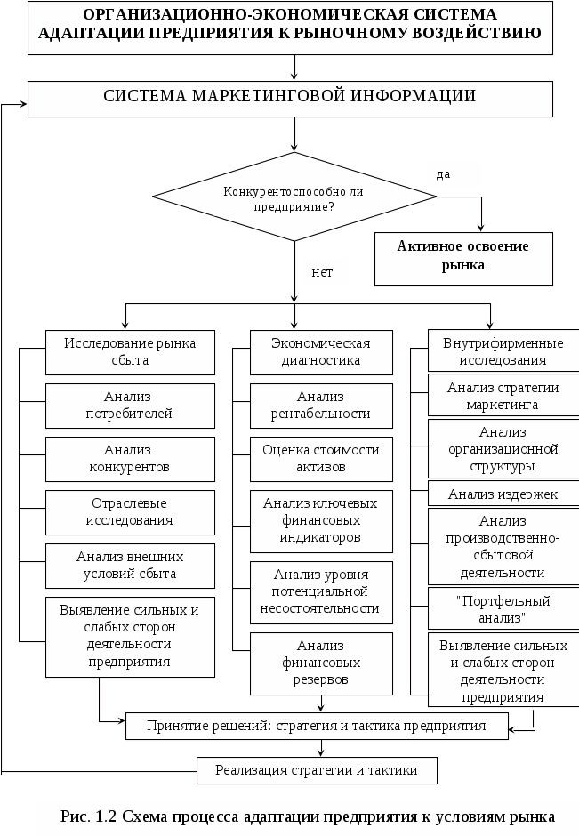 Органически присущая современному производству, ориентированному на «рынок покупателя», черта организованности предполагает развитую рыночную деятельность и строгое выполнение хозяйственных договоров. Последнее объясняется тем, что в условиях централизованно управляемой экономики, издержки не оправдавшейся деятельности предприятия, брало на себя государство, а в новых условиях, - они ложатся на субъекты рынка. Таким образом, руководство предприятий обязано самостоятельно принимать управленческие решения, что, и обуславливает актуальность проблемы адаптации рыночной концепции управления предприятием к сложностям и особенностям рыночных отношений в условиях экономики переходного периода.
