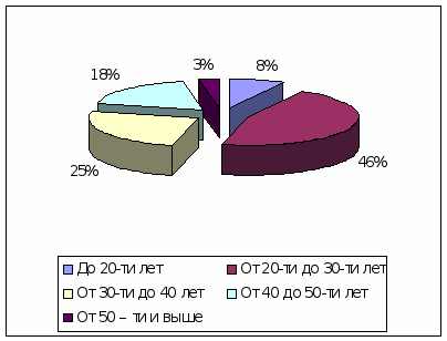 Как видно из рис. 2, наибольшее количество персонала ООО «НИЖД» - в возрасте от 20 до 30 лет, наименьшее количество сотрудников находится в возрасте от 50-ти лет и выше. Следовательно, можно сделать вывод, что персонал ООО «НИЖД» - молодые сотрудники.