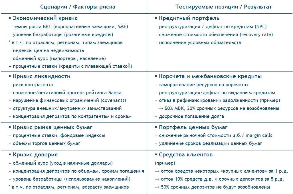 > резкий отток средств клиентов, рост невозврата кредитов, ухудшение финансовых показателей Банка