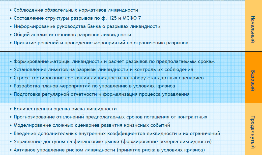 = реализация ликвидных активов, устойчивые остатки, переоформление депозитов, др.