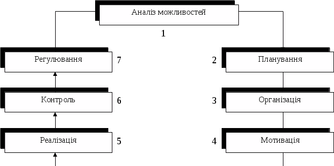 6. Аналіз методів управління об’єктами корпоративної власності дає можливість визначити, що суть управління дочірнім підприємством корпорації полягає в реалізації циклу управління для досягнення максимальної ефективності його функціонування. Найбільш прийнятним для дочірнього підприємства корпорації є розширений цикл управління, що містить сім етапів: аналіз можливостей, планування, організація, мотивація, реалізація, контроль і регулювання.