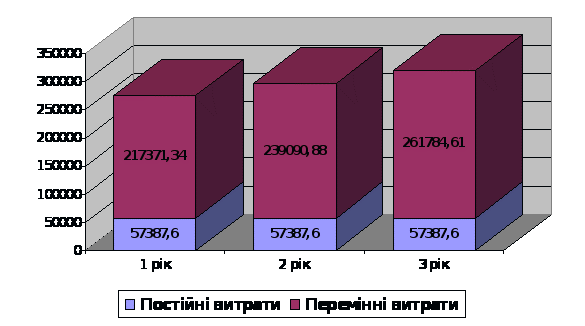 Найбільшу питому вагу в структурі виробничо-збутових витрат займають перемінні витрати (78,9%). Сюди включаються витрати на сировину й компоненти, перемінна частина заробітної плати, витрати на енергоносії. Зростання даних витрат обумовлено зростанням обсягів виробництва.