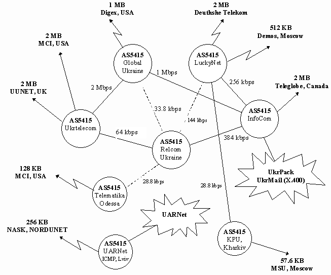 Задача створення сучасної комунікаційної інфраструктури в Україні реалізується успішно завдяки цільовому інтересу зарубіжних телекомунікаційних компаній в використанні України як транзитного вузла території для Транс-Євразійських телекомунікацій. Існуюча вже зараз інфраструктура SDH/ATM складає надійну базу для розвитку інфраструктури Інтернет і інформаційних сервісів. Головною проблемою тут є низька платіжна спроможність українських організацій.