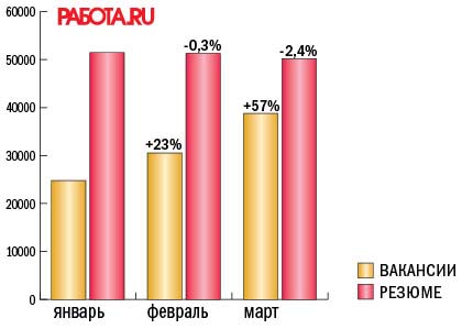 На сайте www.rabota.ru опубликована интересная статистика по количеству размещенных вакансий и резюме в 1-м квартале 2009 года.