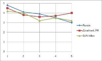 С «Премиальными, РФ» всё просто: большая рентабельность, высокий темп роста отрасли, доминирование в своём сегменте – положение прекрасное. Однако, ситуация может резко измениться, сейчас в мире – финансовый кризис, люди станут пить меньше дорогого пива, поэтому будет благоразумно немного снизить цены, потеряв при этом незначительную часть прибыли, но сохранить долю рынка, что в данный момент является приоритетным.