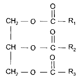Молекула жира состоит из остатка спирта - глицерина и трех остатков жирных кислот, соединенных сложноэфирной связью