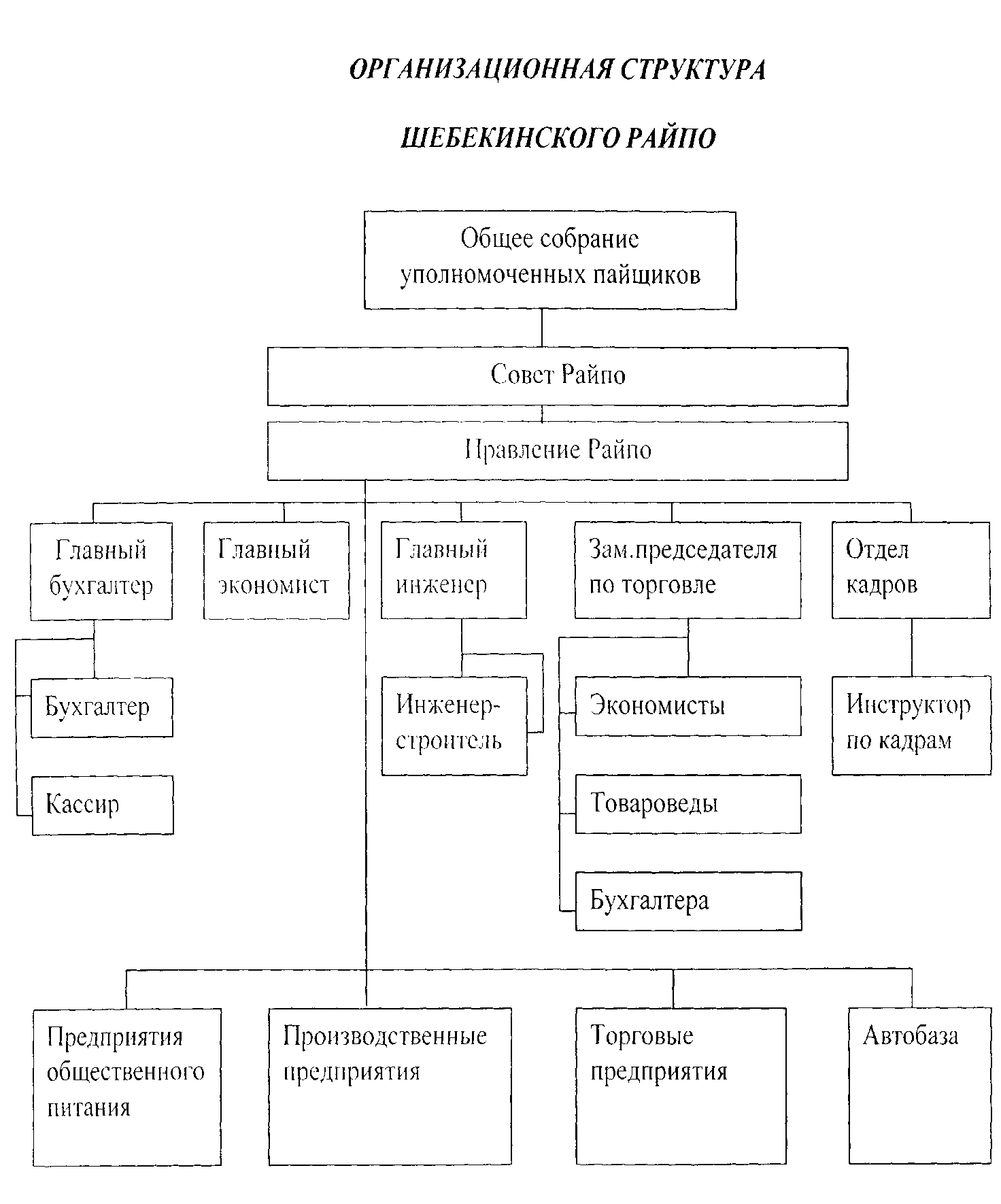 4. Показать организационно-экономическую характеристику Шебекинского райпо.