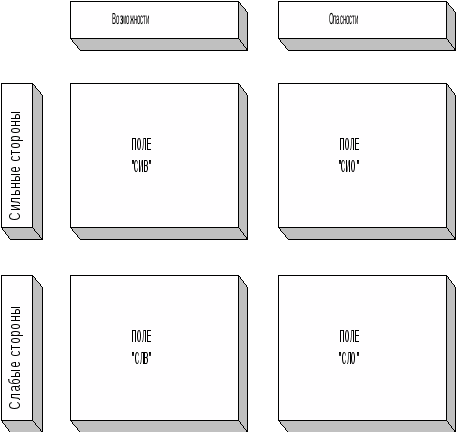 Потім фірма визначає можливості досягнення цих цілей і розробляє різні варіанти своєї діяльності. Багато варіантність діяльності пояснюється випадковим характером основної маси подій, які відбуваються в зовнішньому середовищі і не контролюються фірмою. Весь цей процес дослідження можливостей фірми носить назва swot-аналізу. Він здійснюється по наступних напрямах: