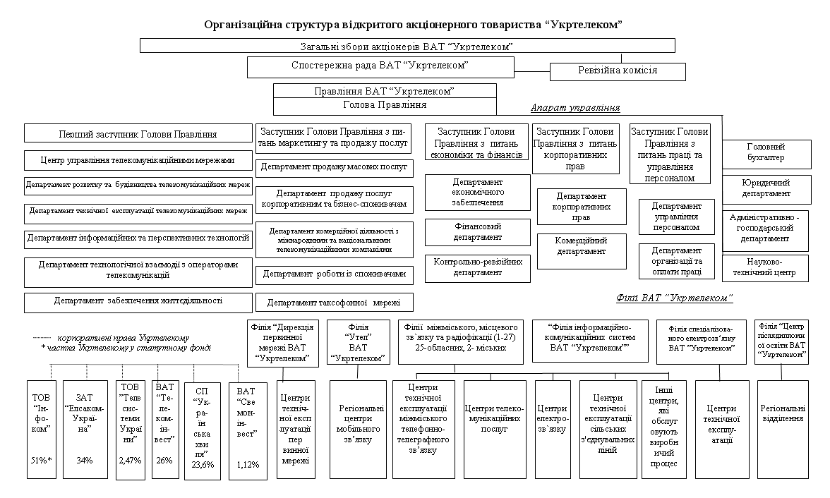 Приведемо Організаційну структуру ВАТ «Укртелеком»