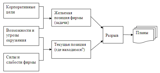 Это процесс, направленный на создание одного или нескольких будущих состояний фирмы, которые желательны и которые не появятся сами собой без определенных усилий.