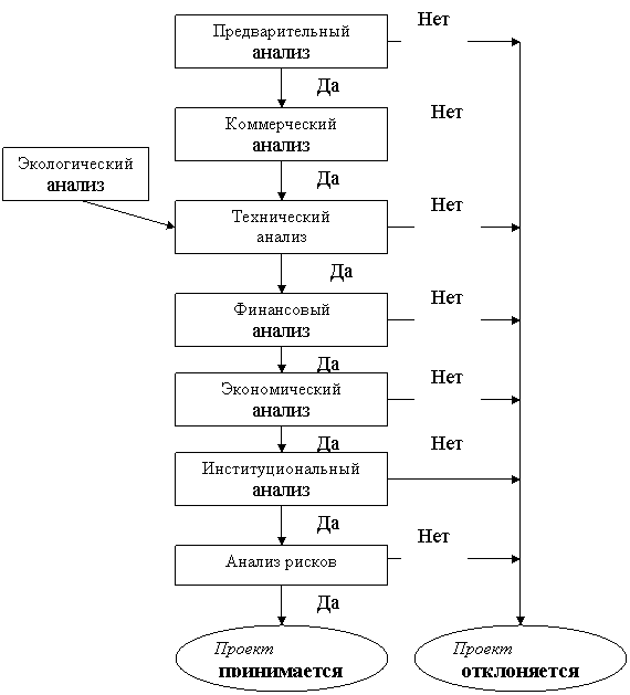 Общая процедура упорядочения инвестиционной деятельности предприятия по отношению к конкретному проекту формализуется в виде так называемого проектного цикла, который имеет следующие этапы.