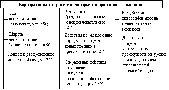 Следует обратить внимание на четыре важнейшие стороны корпоративной стратегии диверсифицированной компании: