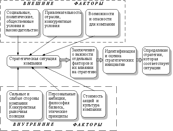 Как правило, стратегия не обеспечивает успеха, если не проведена граница между внутренней и внешней ситуацией, не обеспечено приобретение существенных конкурентных преимуществ и не улучшена деятельность компании.