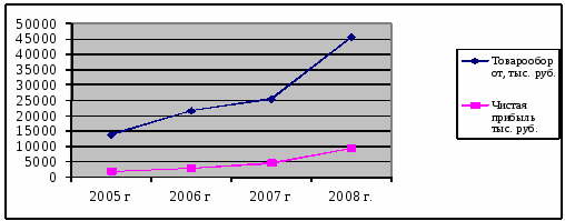 Графически изменение показателей товарооборота, чистой прибыли и рентабельности продукции показаны на рисунках 4 и 5
