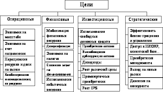 Анализируя мировой опыт и систематизируя его, можно выделить следующие основные цели слияний и поглощений компаний: