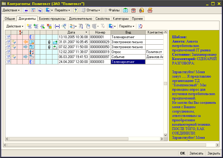9. Телемаркетинг — обеспечение массового обзвона клиентов по заданному сценарию разговора, регистрация контактов и анкет;