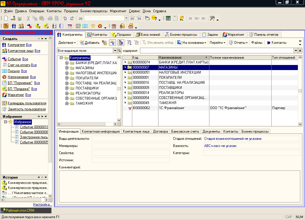 "1С:Предприятие 8. CRM ПРОФ" - совместное решение фирмы "1С" и компании"1С-Рарус", предназначенное для автоматизации процессов взаимоотношений с клиентами, помогающее организовать эффективную работу отделов продаж, маркетинга, сервисного обслуживания на всех этапах взаимодействия с клиентами (см. Приложение 2, Приложение 3).