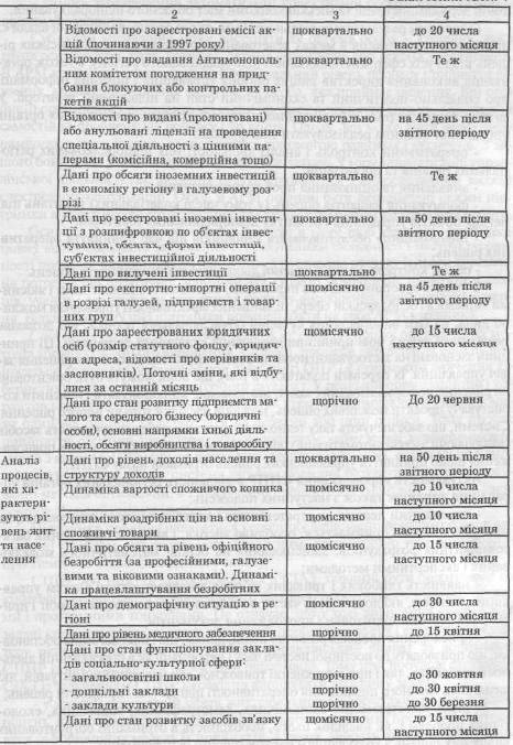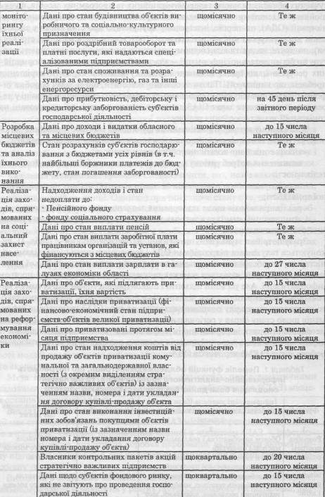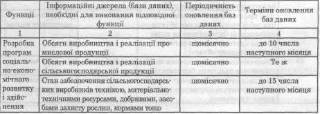 Таблиця 1. Перелік функцій облдержадміністрації, що потребують інформаційно-аналітичного забезпечення, та регламент