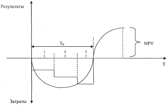 Как видно из графика, срок окупаемости инвестиций соответствует точке, где NPV, рассчитанный нарастающим итогом от начала вложения инвестиций, становится равным нулю. В дальнейшем проект будет приносить чистый доход.