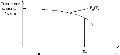 Форма кривой на рис. 1 показывает, что в первое время использования объекта (Тн) показатели его качества не ухудшаются. А затем начинается ежегодное снижение (ухудшение) показателей качества, и чем больше срок службы (применения) объекта, тем больше доля ежегодного снижения. К сожалению, в настоящее время мало результатов исследований в этой области. Имеются сведения только по некоторым свойствам некоторых объектов. Например, производительность тракторов через 2-3 года снижается на 2-5% ежегодно, металлорежущих станков - на 2-3%.