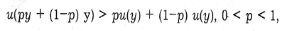 Установлено, что если ЛПР несклонно к риску, то функция полезности, отражающая его предпочтения и отношение к стохастическому риску, строго вогнута. Это графически отражено на рис.2.б. Для субъекта с подобной психологической доминантой восприятия риска всегда оказывается более предпочтительным получение среднего выигрыша в операции наверняка, нежели участие в рискованной операции. Математически это выглядит так: