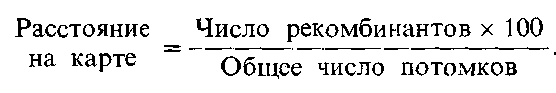 Расстояние измеряется в условных единицах карты; одна единица карты (сантиморганида) соответствует 1% рекомбинантных потомков. Основные закономерности рекомбинации были установлены при изучении всех шести сцепленных с полом признаков вместе. Индивидуальные расстояния на карте аддитивны. Иными словами, если два гена А и В находятся на расстоянии 10 ед. друг от друга, а расстояние от в до С равно 5 ед., то расстояние между А и С, полученное при прямом измерении, будет близко к 15. Поэтому гены можно расположить в линейном порядке.