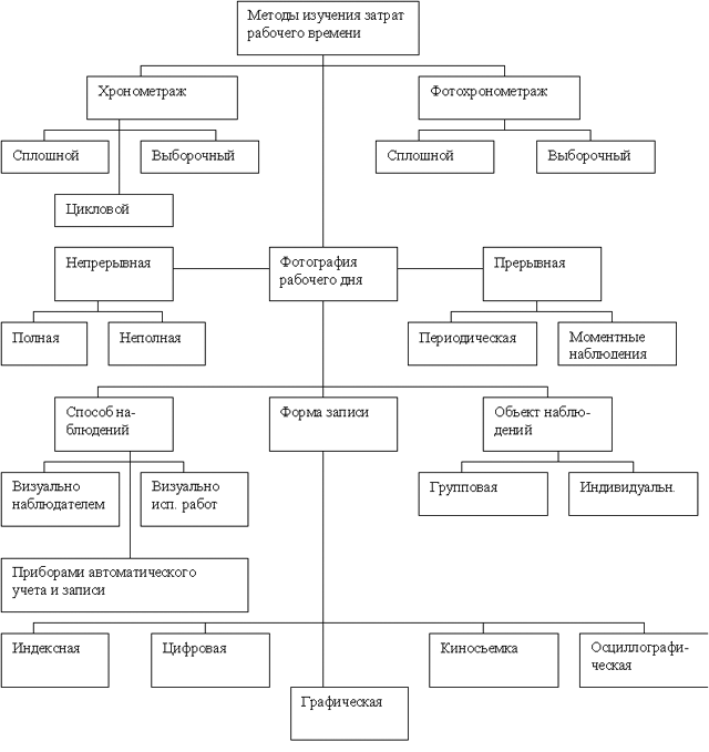 Рисунок 1 - Классификация методов изучения затрат рабочего времени наблюдением.