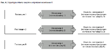 Ранее организационная структура в отделе закупок и продаж компании Р. выглядела так, как показано на рис. 4.