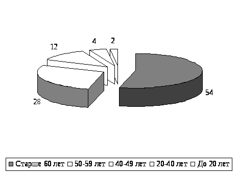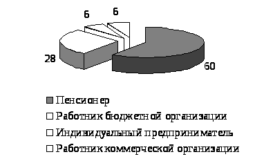 Среди опрошенных 28% пациентов находятся в возрасте 50-59 лет, а 26% - холосты (не замужем). Также, многие опрошенные являются работниками бюджетных организаций (28%) и по 6% являются работниками коммерческой организации и индивидуальными предпринимателями (рис.17).