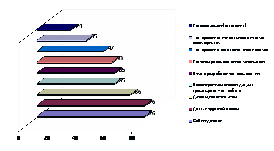 Разработка пакетов тестовых заданий для отбора персонала на конкретные специальности и должностные уровни.