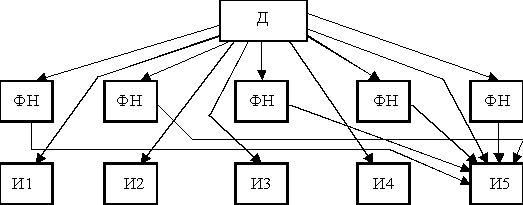 Д- директор; ФН - функціональні начальники; В - виконавці