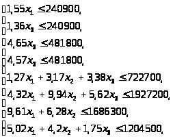 Следовательно, для получения максимальной прибыли с учетом производственных мощностей и прибыли на каждое изделие необходимо производить: изделий А - 133686, изделий К -63945, изделий Ж -103612.