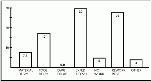 Диаграмма потерь времени приведена на рис.5, каждой причине потерь соответствует столбец определенного размера. Оценка того, насколько каждая из потерь может быть уменьшена предлагаемым программным решением, может послужить исходными данными для расчета выгоды.