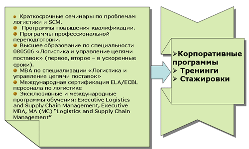 - Расширение знаний в области логистики у специалистов, напрямую не связанных с функционированием ООО "Авелина Логистик". В настоящее время многие производственные, торговые и другие предприятия используют неэффективные схемы снабжения и распределения. Большинство из них имеют собственный автопарк, службы по снабжению, сбыту, значительные складские площади, которые не используются с максимальной отдачей. Низкая эффективность работы таких подразделений часто связана с недостаточными знаниями в области логистики. Повышение уровня логистических знаний у специалистов, отвечающих за обеспечение транспортировки и хранения грузов на предприятиях, позволит оптимизировать процессы снабжения и сбыта, в том числе за счет перераспределения функций и возможной передачи их части специализированным предприятиям.