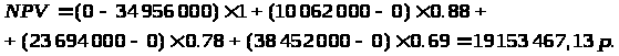 чистый дисконтированный доход, равный 19153467,13 р., как видим, больше нуля, что является необходимым условием прибыльности любого проекта;