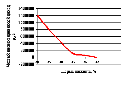 Рис. 3. Зависимость чистого дисконтированного дохода от нормы дисконта
