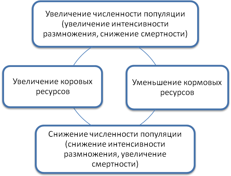 Простейшая схема саморегуляции численности популяции.