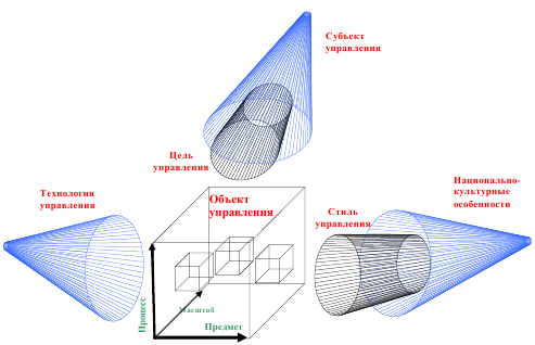 В итоге имеем трехмерное пространство классификации объектов управления, находящихся в разрезах классификаций по субъекту, технологии, стилю, цели управления, влияния на них национально-культурных особенностей.